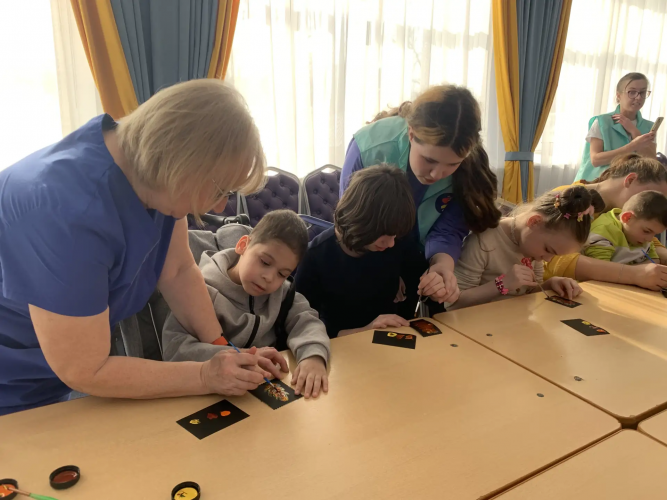Встреча началась с познавательной беседы, в ходе которой волонтеры познакомили воспитанников с палехской миниатюрой — русским народным художественным промыслом, получившим развитие в поселке Палех Ивановской области. Ребята узнали об особенностях палехской росписи, ее ярких красках и традиционных сюжетах.